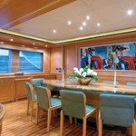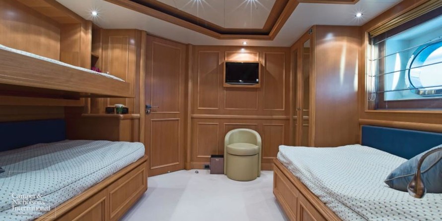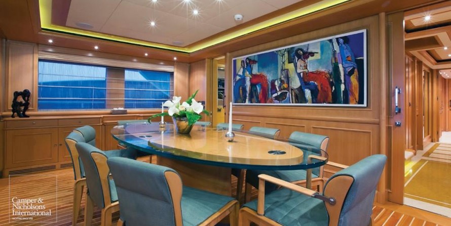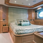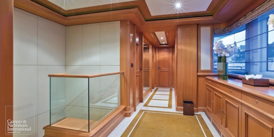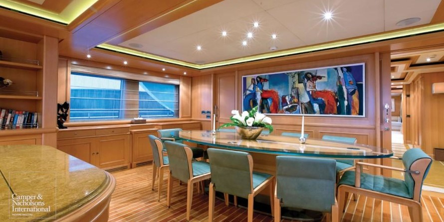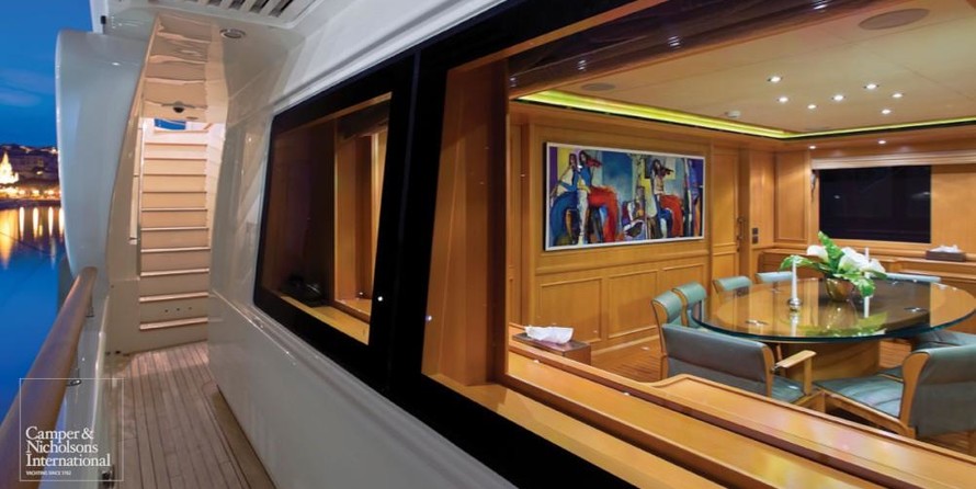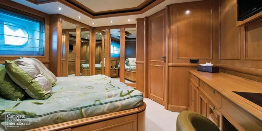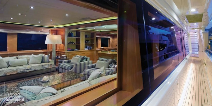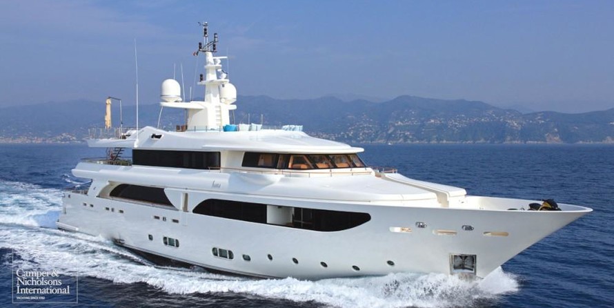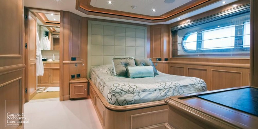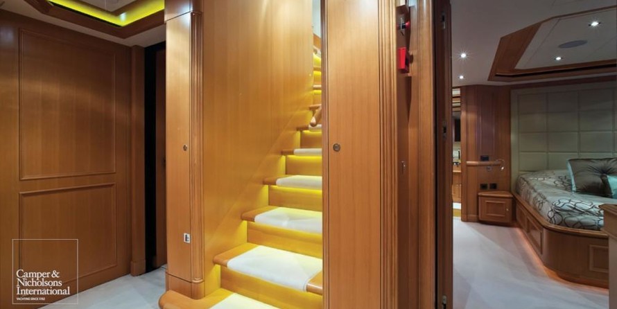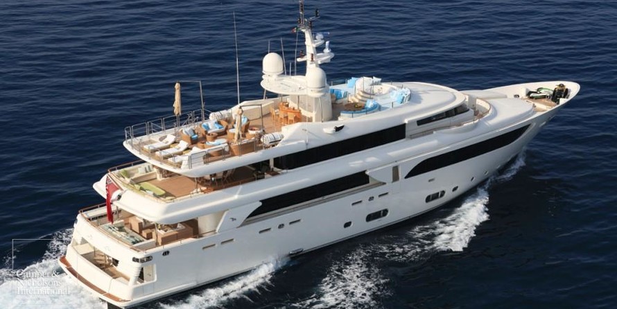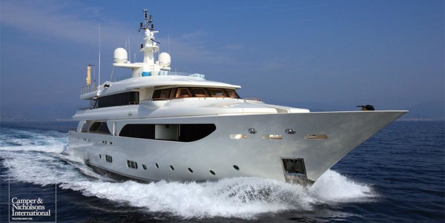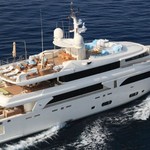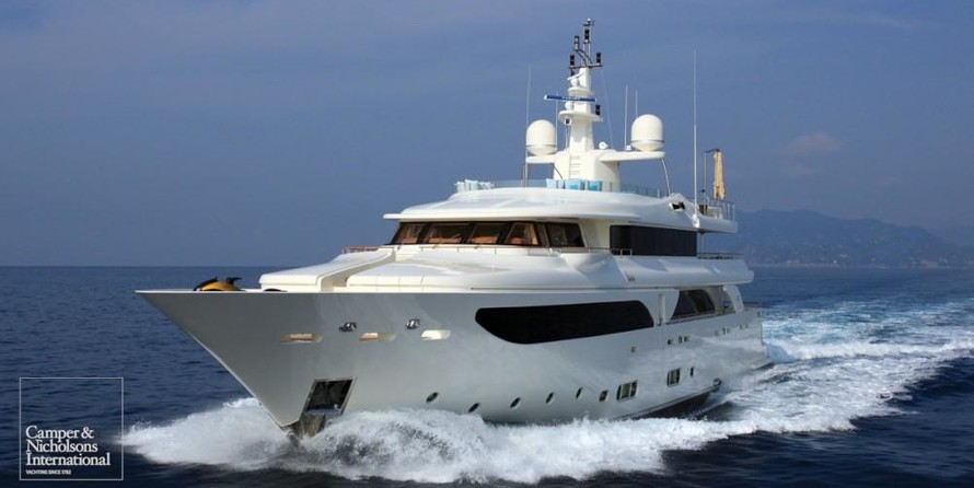 The motor yacht can accommodate 11 guests in 5 cabins with an interior design by Claude Missir and an exterior design by Zuccon.