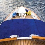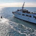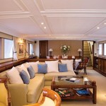 The motor yacht can accommodate 10 guests in 4 cabins and an exterior design by Admiralty.