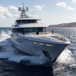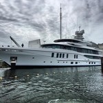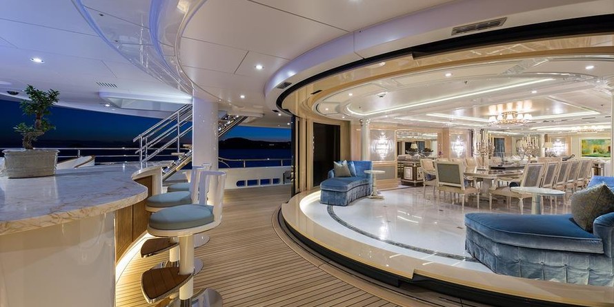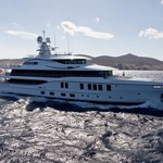 The motor yacht can accommodate 12 guests in 6 cabins with an interior design by Winch Design and an exterior design by Tim Heywood.