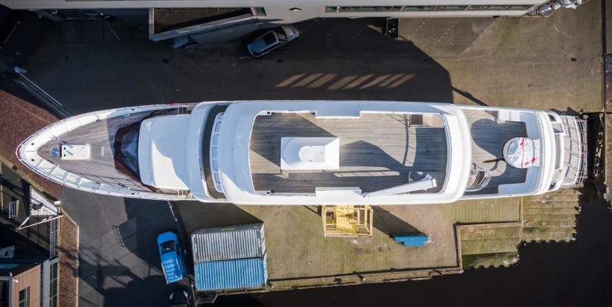 The motor yacht can accommodate 12 guests in 6 cabins with an interior design by Pierre Tanter and an exterior design by De Voogt.