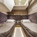 She is powered by MAN engines of 1200 hp each giving her a maximum speed of 31 knots and a cruising speed of 25 knots.