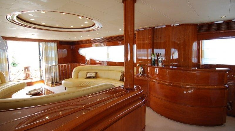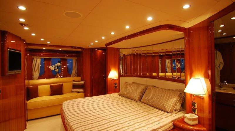 The motor yacht can accommodate 10 guests in 5 cabins.