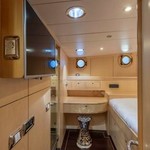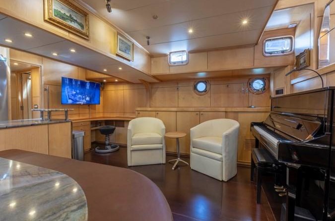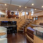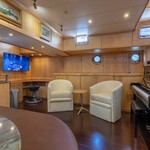 She is powered by Perkins engines of 145 hp each giving her a maximum speed of 10 knots and a cruising speed of 9 knots.