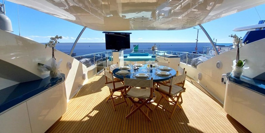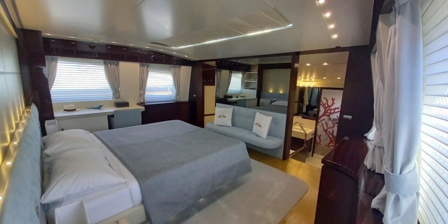 The motor yacht can accommodate 11 guests in 5 cabins. The yacht was designed by Massimo Verme.