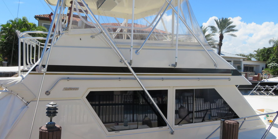 THIS 55 HAS HARDLY BEEN USED WITH ROUGHLY 1800 HRS ON THE ENGINES BEFORE THEY WHERE OVERHAULED. NOW WITH APPROX. 100 HRS. THE GENERATORS HAVE LOW ORIGINAL HOURS , AC'S AND ALL OTHER SYSTEMS IN EXCELLENT WORKING CONDITION. SHE WILL SURVEY WELL. BONES OF THIS BOAT ARE A 10/10. THE BOTTOM WAS JUST DONE IN FEB 2018. THE INTERIOR IS ORIGINAL. SHE IS A CANVAS READY TO BE PAINTED. A TRUE CLASSIC BATTLE SHIP. OWNER IS MOTIVATED AND WILL TAKE A TRADE OF A SMALLER SPORT FISH 45FT OR LESS.