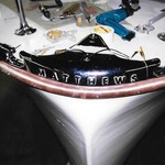 In 2016 the transom frame was found to be suspect and was removed and replaced (500 hour project involving among many other things laminating and steam bending the new oak frame.
