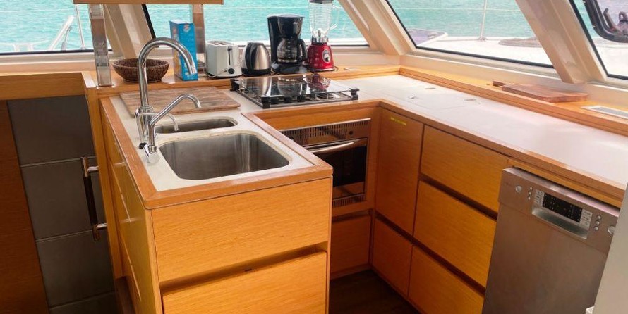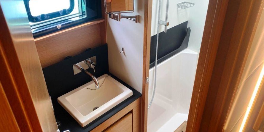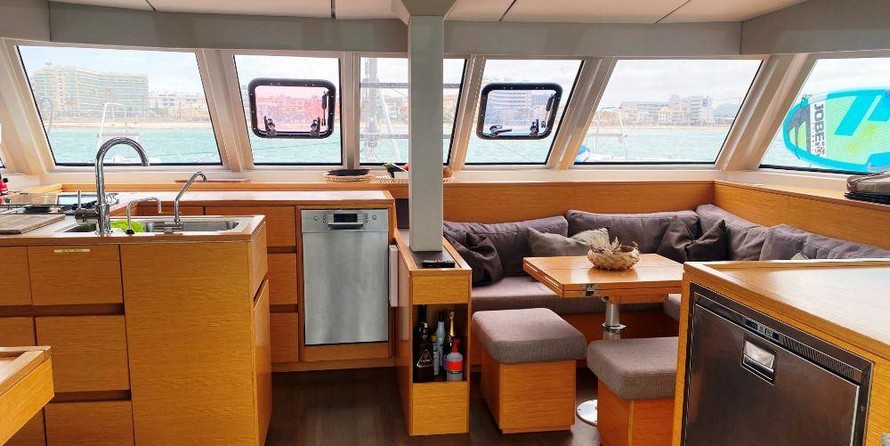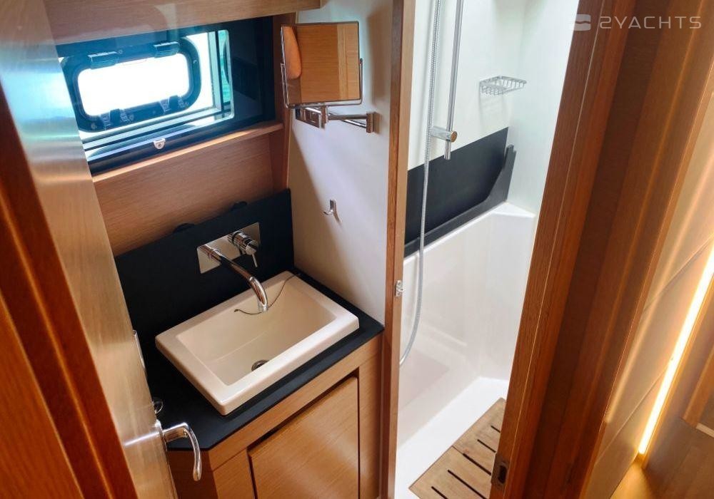 Este Nautitech 46 con flybridge de 2017 del primer propietario ofrece gran confort, espacio, estabilidad y seguridad. Este This Nautitech 46 tiene un aparejo de cúter con una vela mayor, Lazy Bags y Lazy Jacks, foque autovirante, gennaker, cabrestante eléctrico y un bauprés. Además equipado con: dos motores diésel Volvo Penta de 55 CV, hélices plegables de bronce, generador, inversores, desalinizadora, bote auxiliar con fueraborda de 20 CV, etc. El amplio equipo de navegación de Garmin incluye radar. Y, el completo equipe de seguridad está inclusivo balsas salvavidas y Epirb. El exterior está diseñado con el máximo confort en mente. Especialmente las cubiertas en proa y el flybridge ofrecen amplio espacio. El interior de este This Nautitech 46 está equipado con todas las comodidades como: aire acondicionado en el salón y todas las cabinas, lavavajillas, etc. Esta versión de 4 cabinas tiene dos cascos idénticos, cada uno con dos cabinas, un compartimento de ducha y aseos privados. Adicionalmente hay dos pequeñas cabinas en ambas proas, que podrían servir como cuarto de tripulación, litera para los niños o almacenamiento. Con este crucero familiar puede ir a cualquier lugar del mundo.