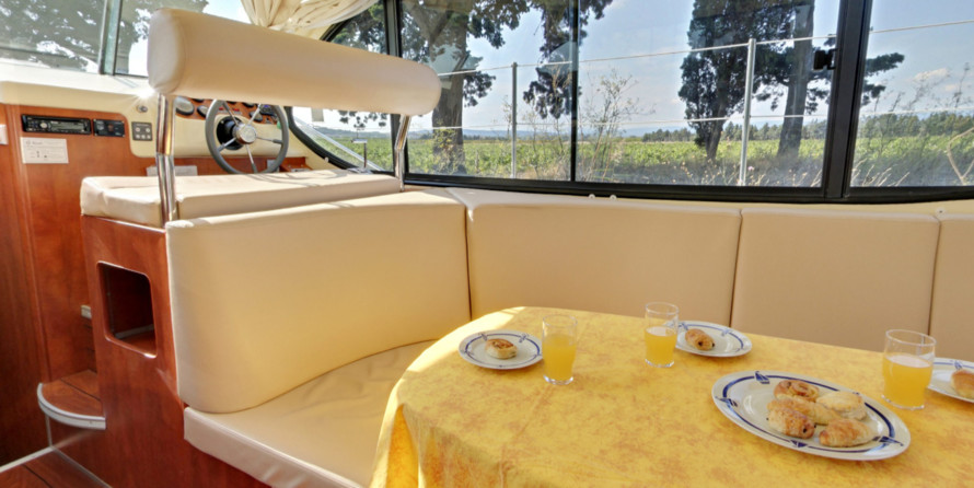 The Nicols Estivale Octo Harskirchen houseboat was built in 2014, and it is docked in Nicols Harskirchen, France.