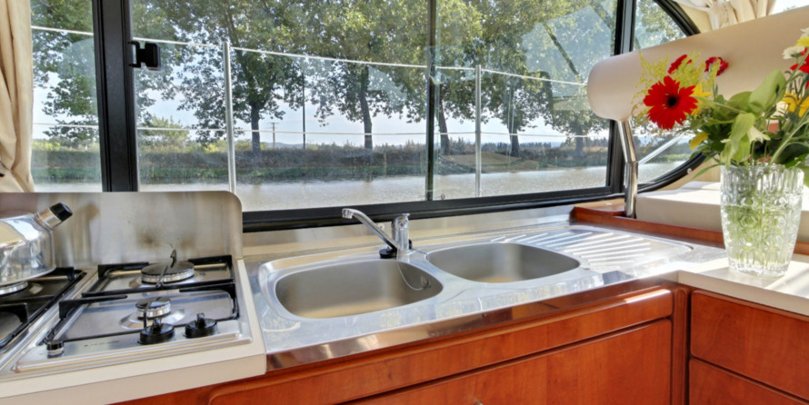 A well-equipped galley with oven, cooker, sink and kitchen utensils is prepared to facilitate cooking. There is also a freezer on board.