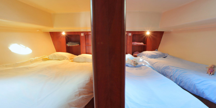 The living area of this houseboat consists of 4 cabins and accommodates 10 people. A shower is at the guests' disposal and there are 2 toilets on board.