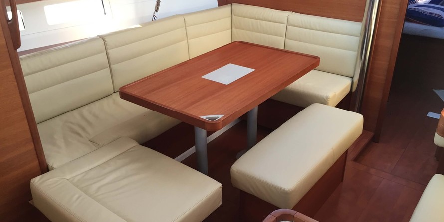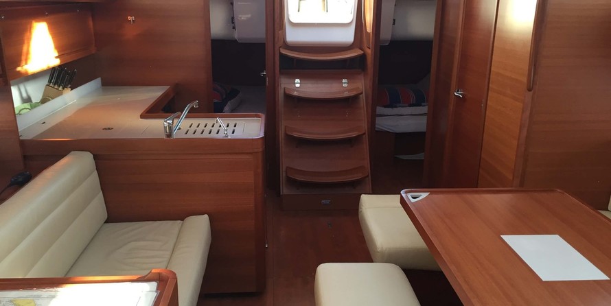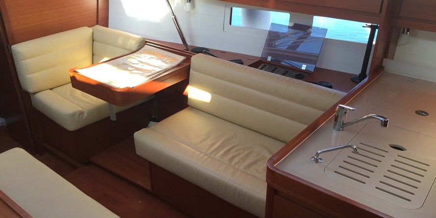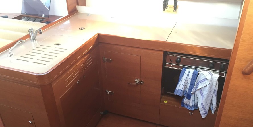 Boat equipment features rolling mainsail, bbq, bimini and bow thruster. It also boasts a heating, an audio system, outside speakers and inside speakers. The fully-equipped galley includes an oven, cooker, sink and kitchen utensils.