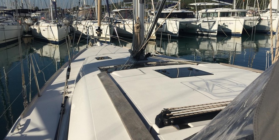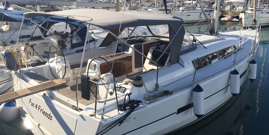 3-cabin sailing yacht Dufour 412 - Fun 4 Friends was built in 2017, and it is docked in D-Marin Marina Mandalina, Croatia.