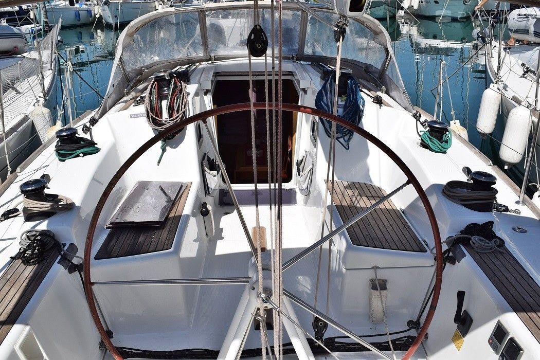 Boat equipment features classical mainsail, salon gps plotter and bimini. It also boasts a heating, an audio system, outside speakers and inside speakers. The fully-equipped galley includes an oven, cooker, sink and kitchen utensils.