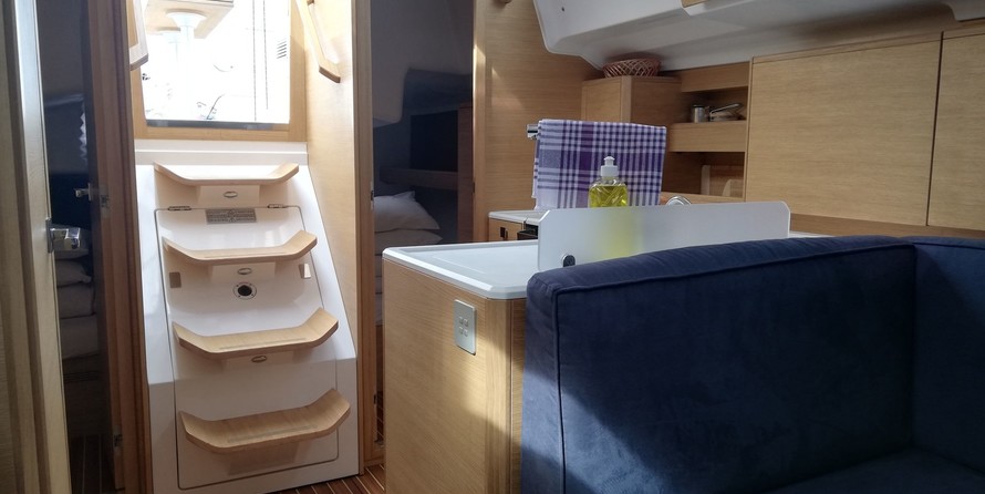 Boat equipment features classical mainsail, salon gps plotter, bimini and outside gps plotter. It also boasts a flat screen tv, heating, an audio system, outside speakers and inside speakers. The fully-equipped galley includes an oven, cooker, sink and kitchen utensils.
