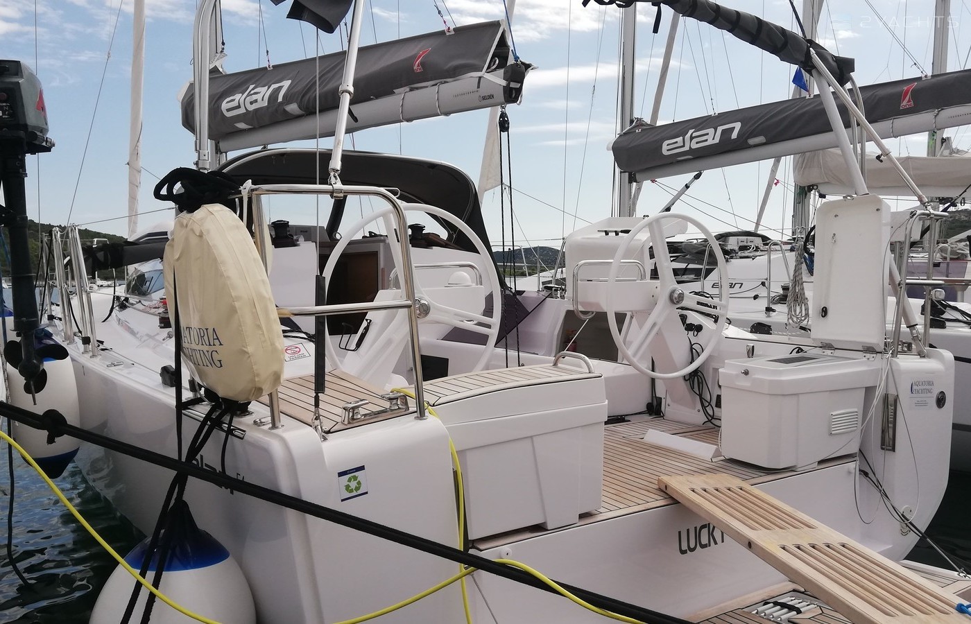 3-cabin sailing yacht Elan E4 - Lucky was built in 2019, and it is docked in Marina Pirovac, Croatia.
