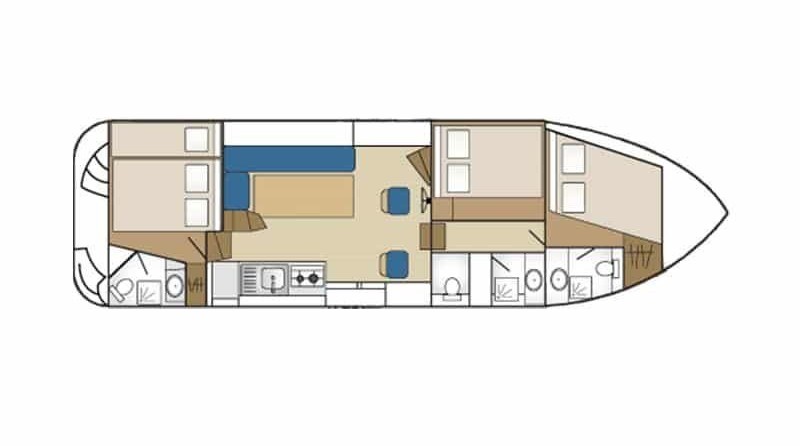 The living area of this houseboat consists of 3 cabins and accommodates 9 people. A shower is at the guests' disposal and there are 3 toilets on board.
