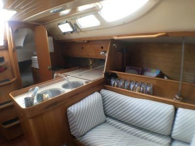 Boat equipment features classical mainsail, salon gps plotter and bimini. It also boasts an an audio system and inside speakers. The fully-equipped galley includes an oven, cooker, sink and kitchen utensils.