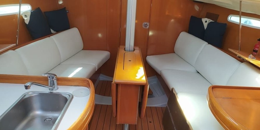 Volumnie can accommodate up to 6 people in 2 double cabins and a saloon with 2 extra beds. Pillows and blankets are included in the price.