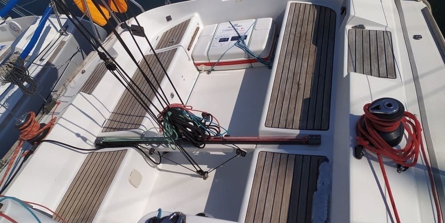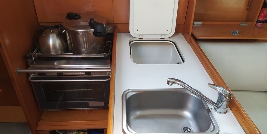 Boat equipment features classical mainsail and salon gps plotter. It also boasts an an audio system and inside speakers. The fully-equipped galley includes an oven, cooker, sink and kitchen utensils.