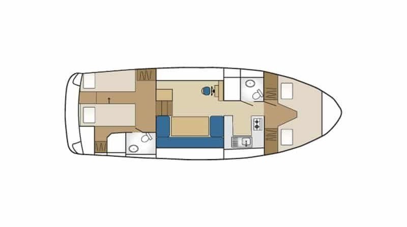 The living area of this houseboat consists of 2 cabins and accommodates 6 people. A shower is at the guests' disposal and there are 2 toilets on board.