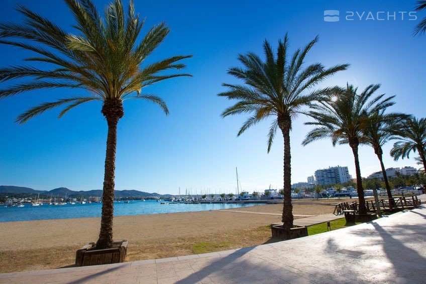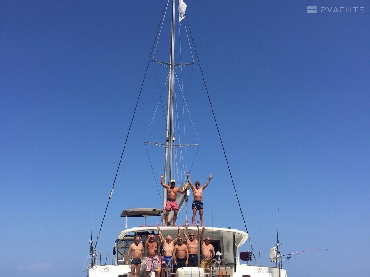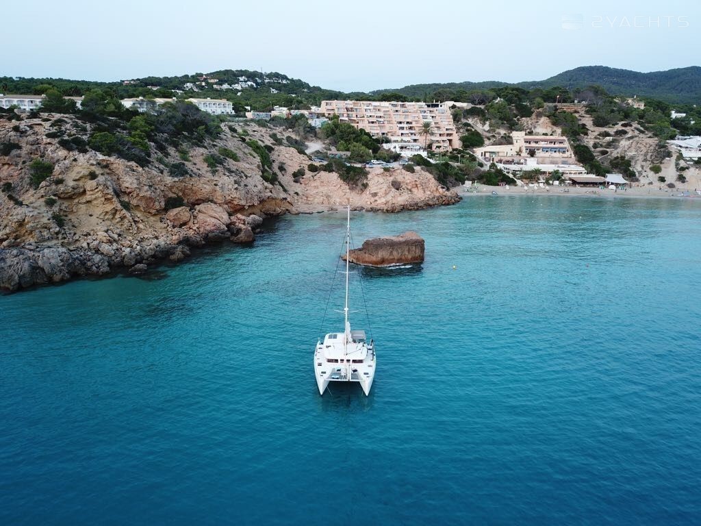 5-cabin catamaran Lagoon 400 S2 - Martina One was built in 2013, and it is docked in Club Nàutic Sant Antoni de Portmany, Spain.
