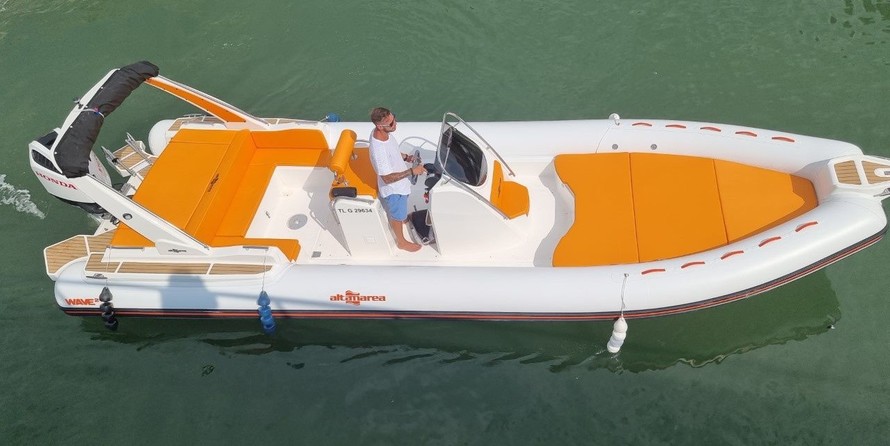 This 2022 Altamarea 27 Wave - 22 is suitable for 10 people. It is docked in Port Fréjus, France.