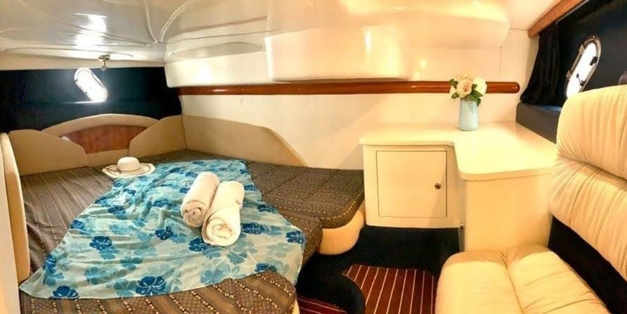 Boat equipment features generator, bimini and bow thruster. It also boasts a flat screen tv, heating, air conditioning, an audio system and outside speakers. The fully-equipped galley includes a microwave, oven, cooker, sink and kitchen utensils.