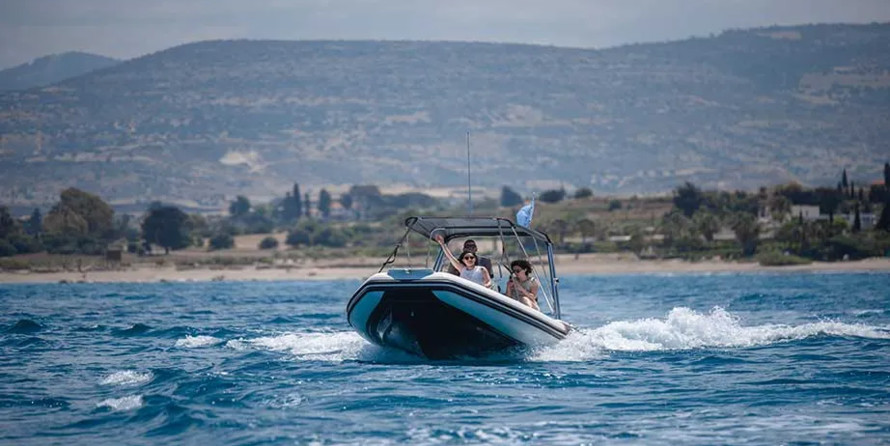 This motorboat is operated by the charter company Latchi Pleasure Boats.