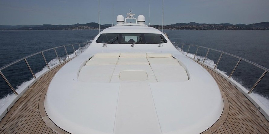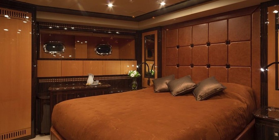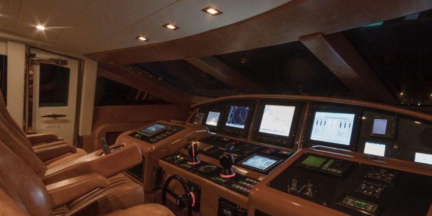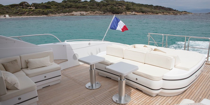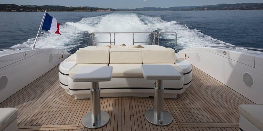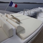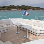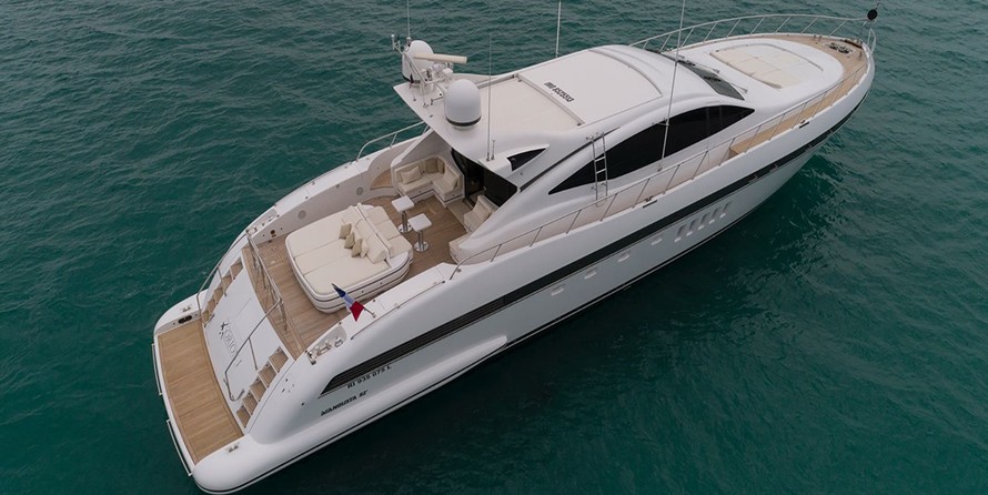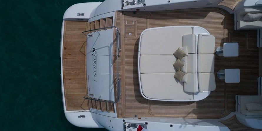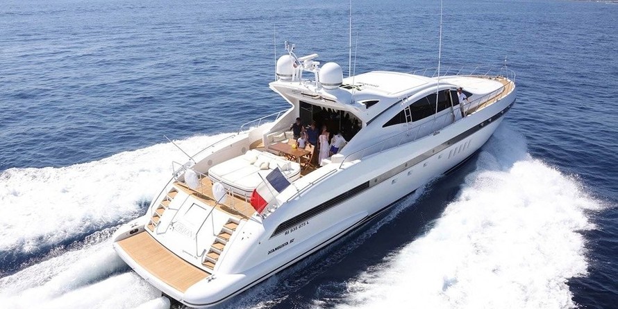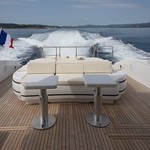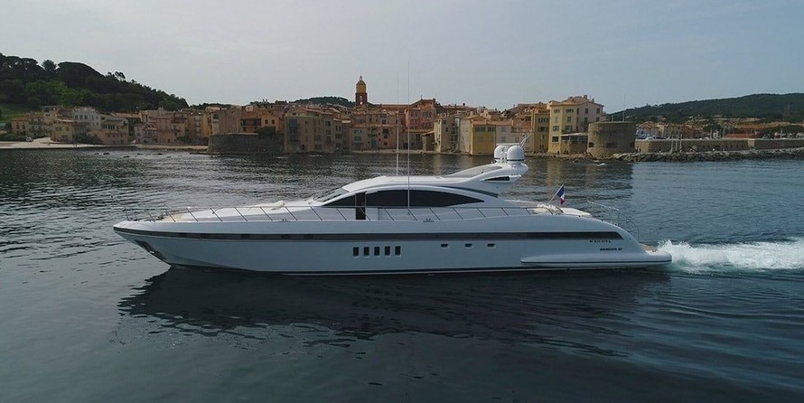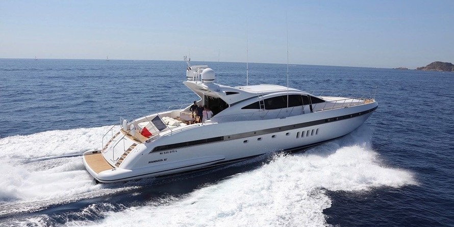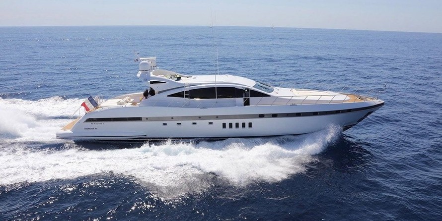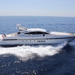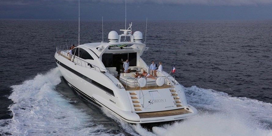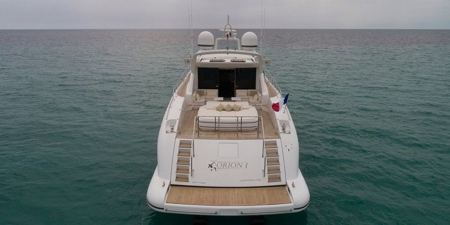 4-cabin motor yacht Mangusta 91 - Orion 1 was built in 2009, and it is docked in Les Marines de Cogolin, France.