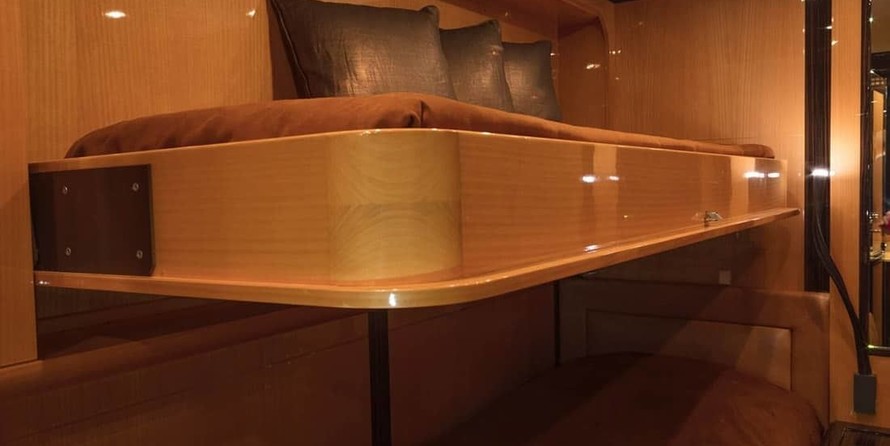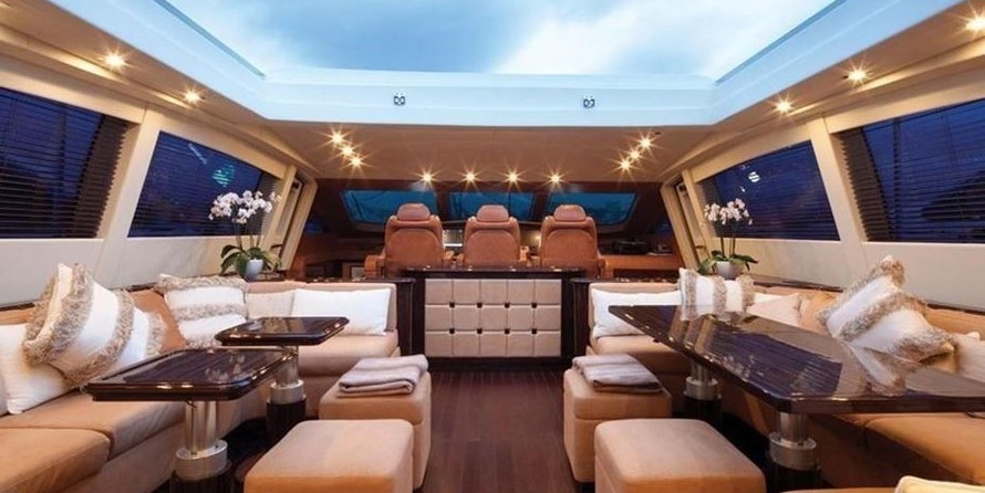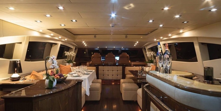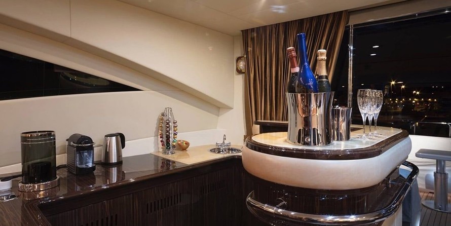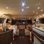 Boat equipment features radar, generator, salon gps plotter, bimini and bathing platform. It also boasts a flat screen tv, heating, air conditioning, washing machine and audio system. The fully-equipped galley includes an oven, cooker, sink and kitchen utensils.