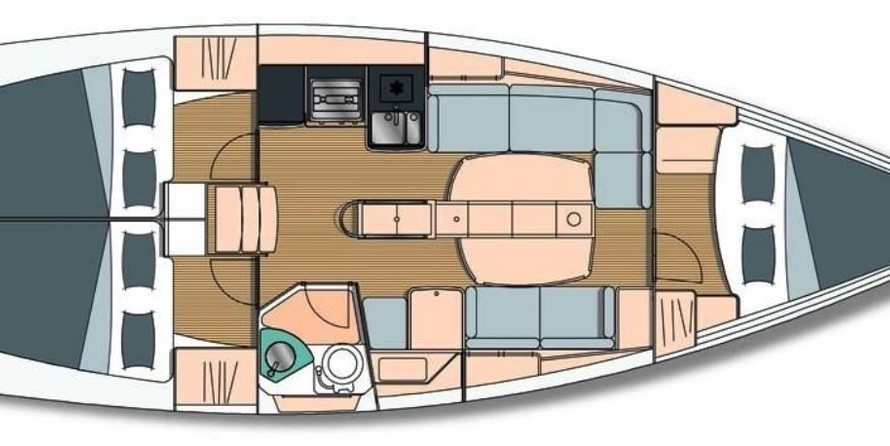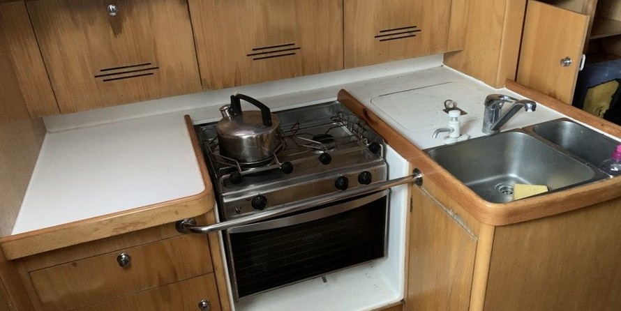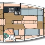 Boat equipment features classical mainsail and salon gps plotter. It also boasts an an audio system and inside speakers. The fully-equipped galley includes an oven, cooker, sink and kitchen utensils.
