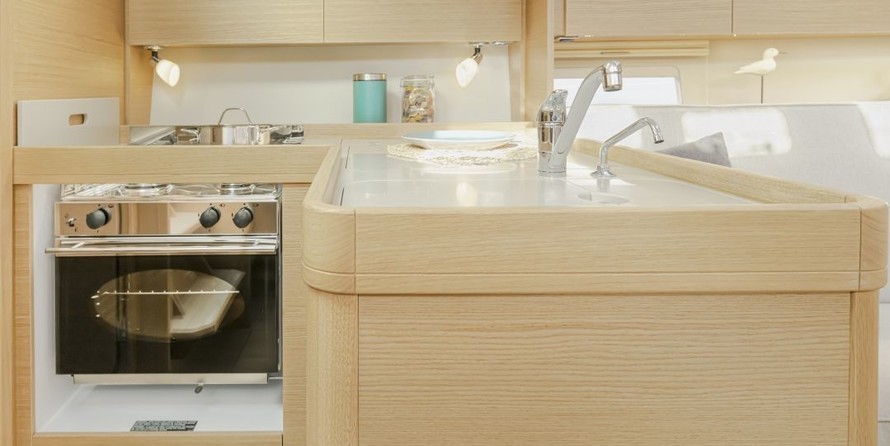 Boat equipment features classical mainsail, bimini and outside gps plotter. It also boasts an an audio system, outside speakers and inside speakers. The fully-equipped galley includes an oven, cooker, sink and kitchen utensils.