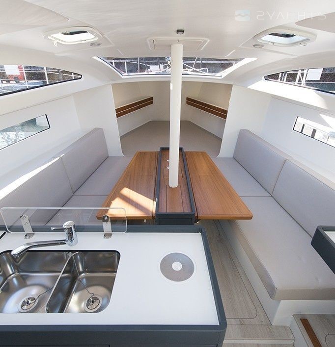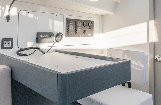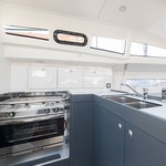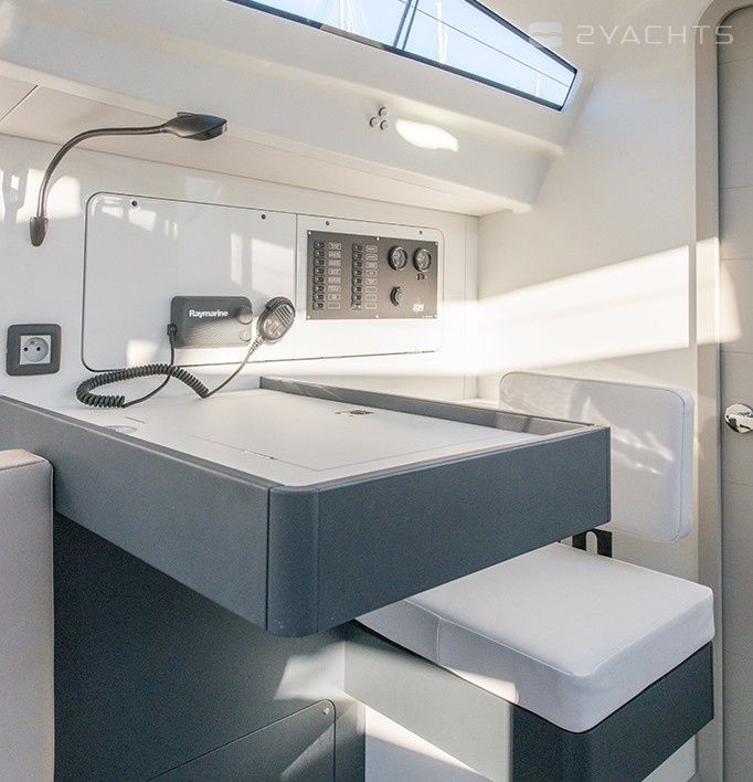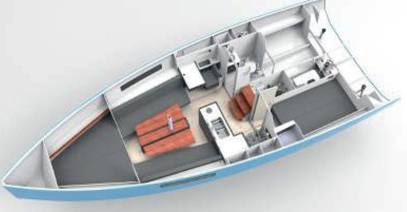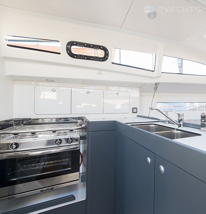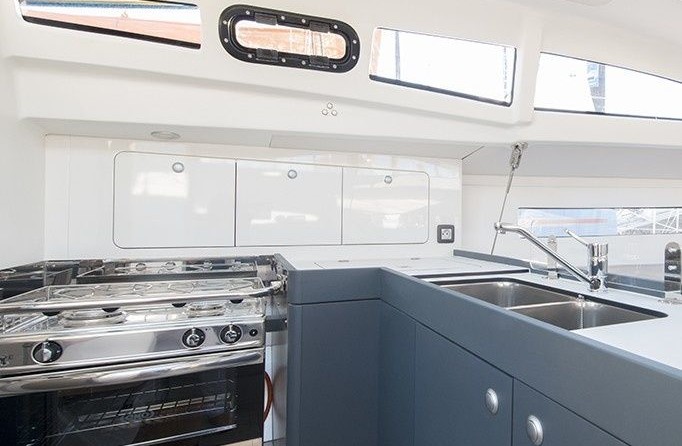 Boat equipment features classical mainsail and outside gps plotter. It also boasts an an audio system and inside speakers. The fully-equipped galley includes an oven, cooker, sink and kitchen utensils.