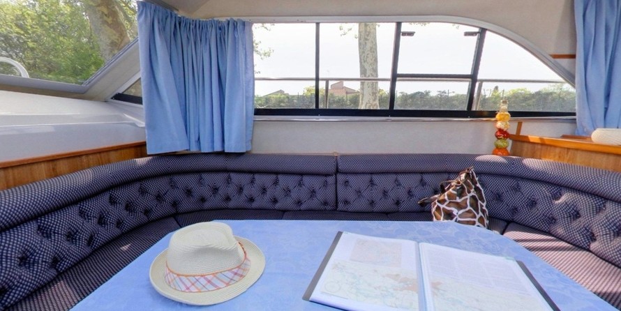 The Le Boat Clipper CF Fontenoy 1 houseboat was built in 2001, and it is docked in Le Boat Fontenoy-le-Château, France.