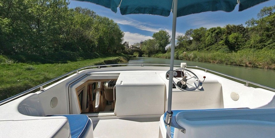 This houseboat is operated by the charter company LeBoat.