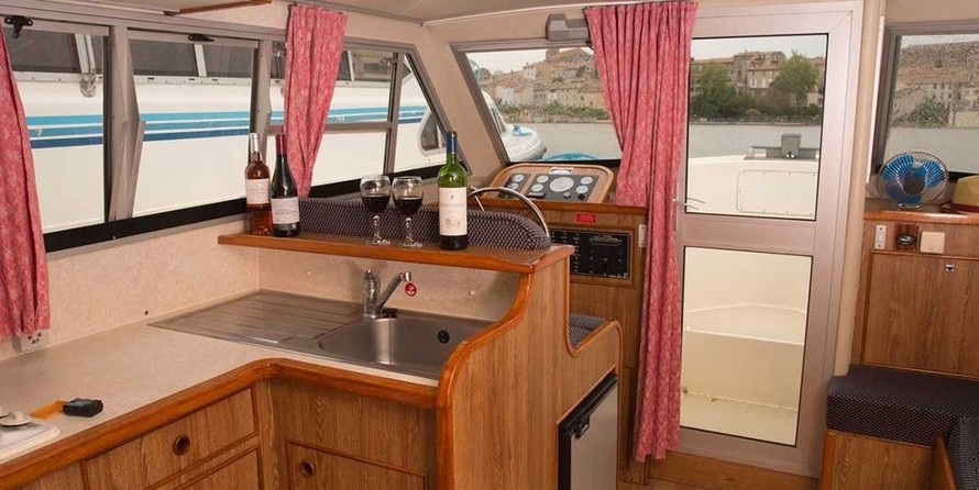 This houseboat is equipped with bathing platform. In chilly weather, guests will benefit from heating. an audio system, flybridge and inside speakers are also available.