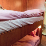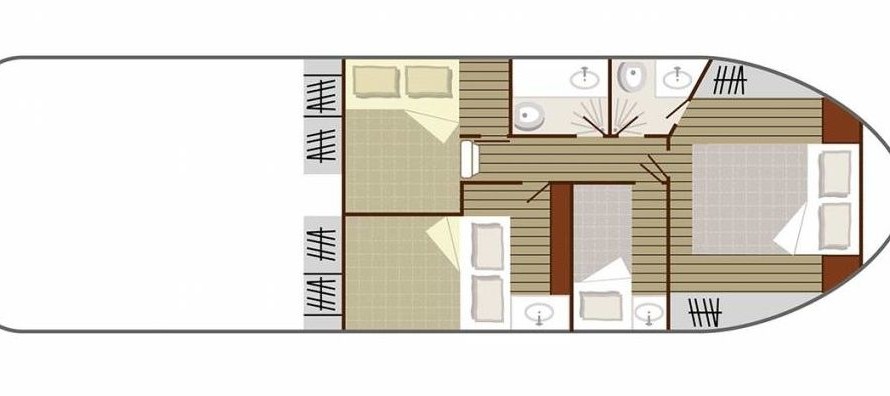 The living area of this houseboat consists of 4 cabins and accommodates 8 people. A shower is at the guests' disposal and there are 2 toilets on board.