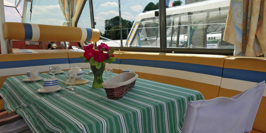 The Nicols Sedan 1160 N Juac houseboat was built in 2009, and it is docked in Inter-Croisières Sireuil, France.