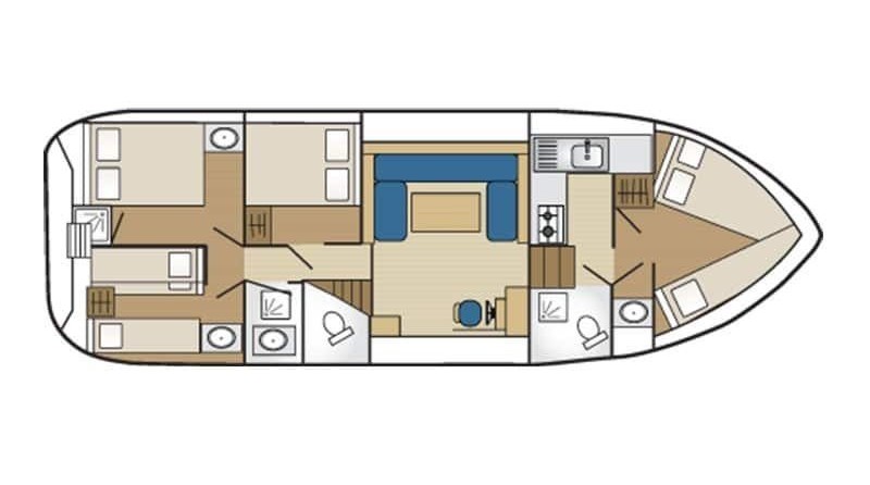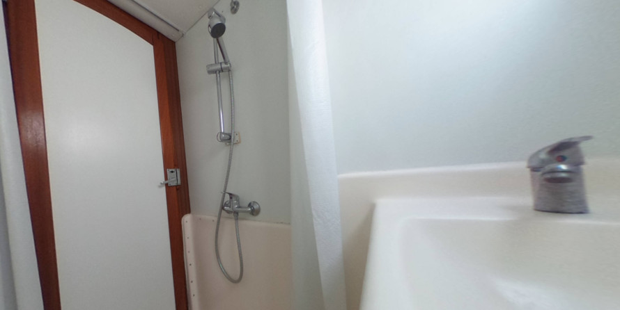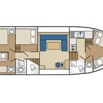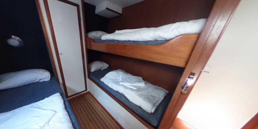 The living area of this houseboat consists of 4 cabins and accommodates 12 people. A shower is at the guests' disposal and there are 2 toilets on board.