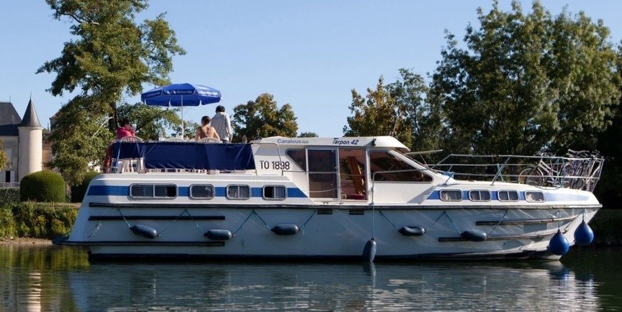 The Tarpon 42 Les Canalous 10 houseboat was built in 2010, and it is docked in Port de Redon, France.