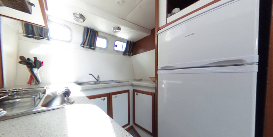 A well-equipped galley with oven, cooker, sink and kitchen utensils is prepared to facilitate cooking. There is also a freezer on board.