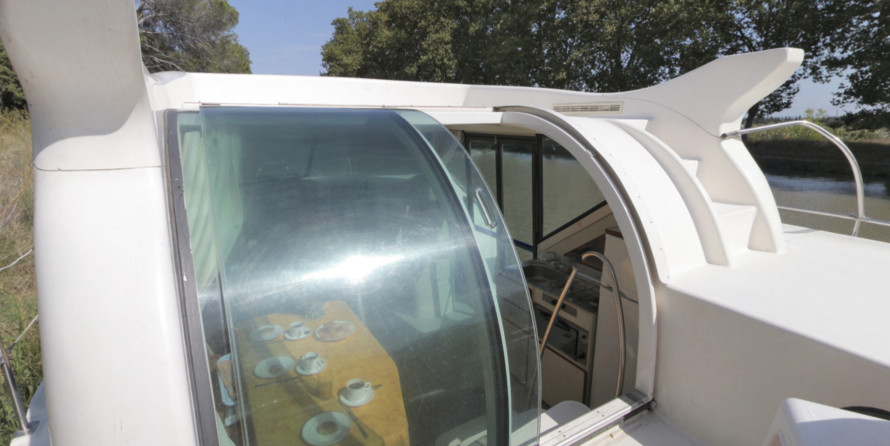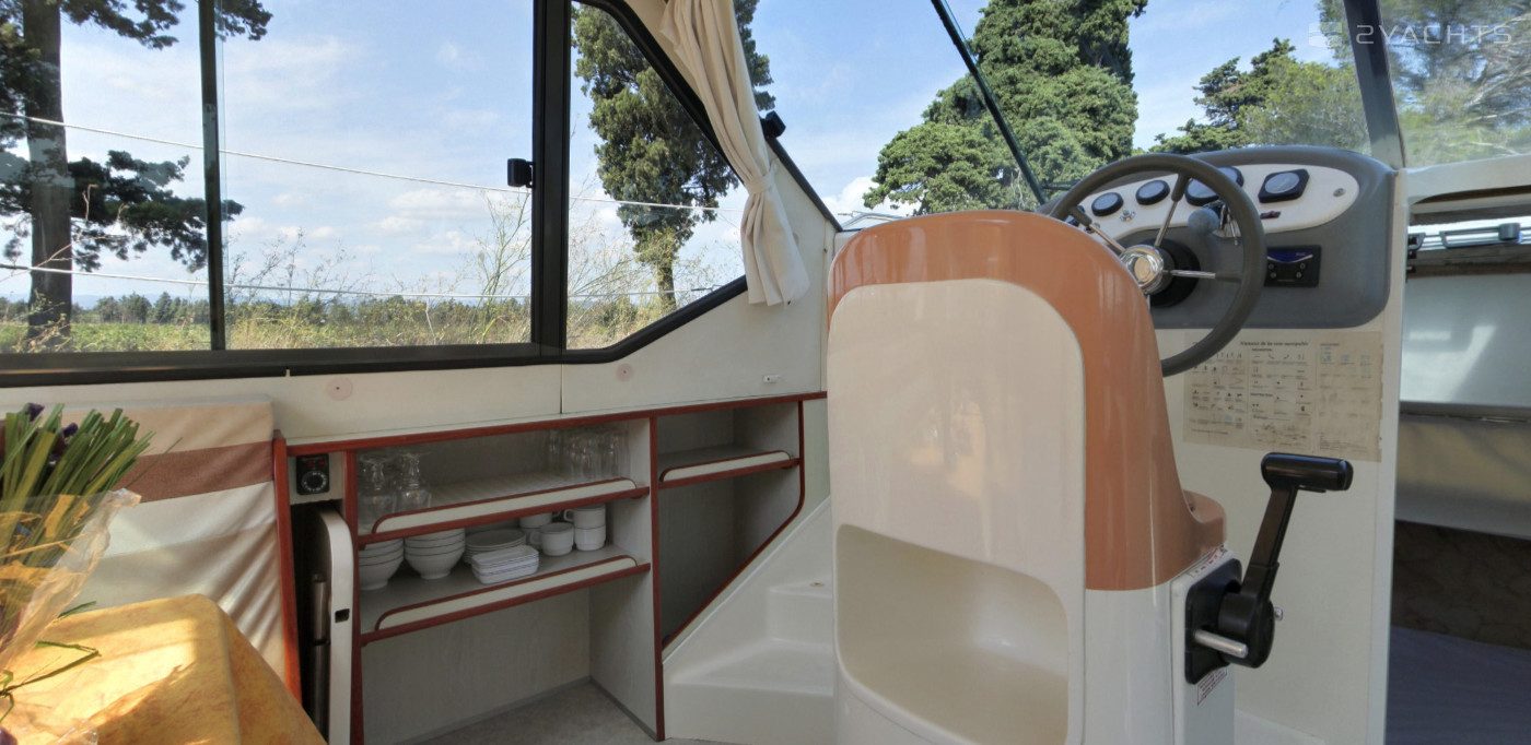 The Nicols Confort 900 DP Jarnac houseboat was built in 1999, and it is docked in Inter-Croisières Sireuil, France.