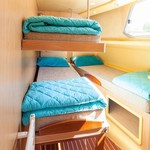 The living area of this houseboat consists of 4 cabins and accommodates 12 people. A shower is at the guests' disposal and there are 4 toilets on board.