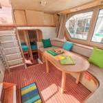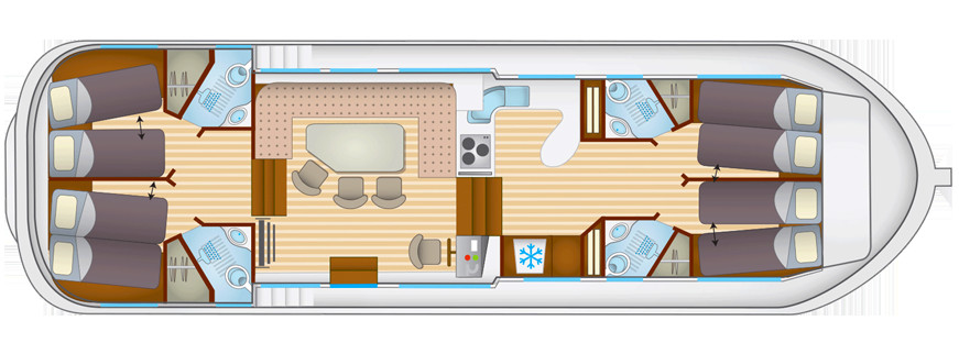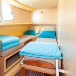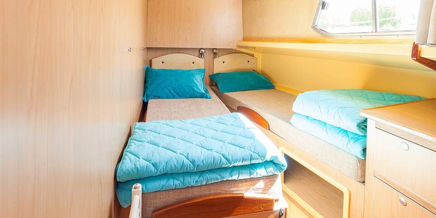 The living area of this houseboat consists of 4 cabins and accommodates 12 people. A shower is at the guests' disposal and there are 4 toilets on board.
