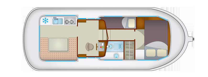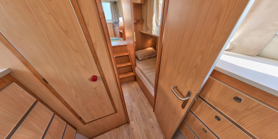 The living area of this houseboat consists of 2 cabins and accommodates 5 people. A shower is at the guests' disposal and there is 1 toilet on board.