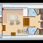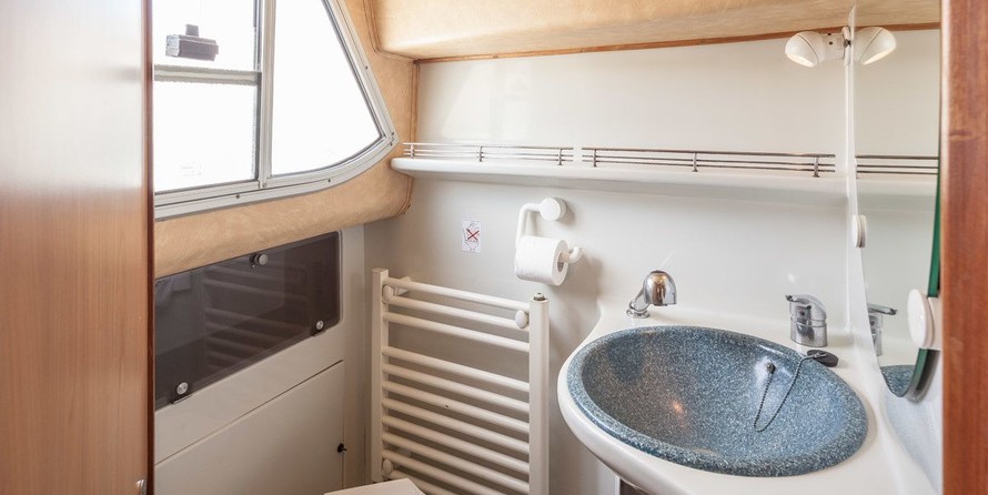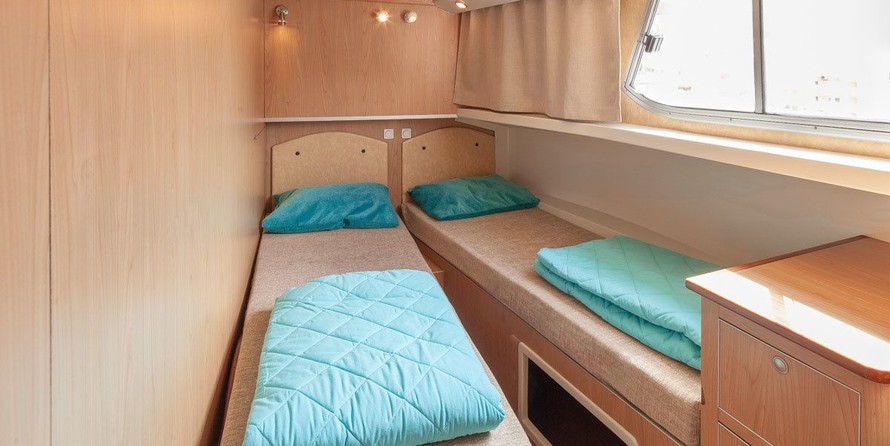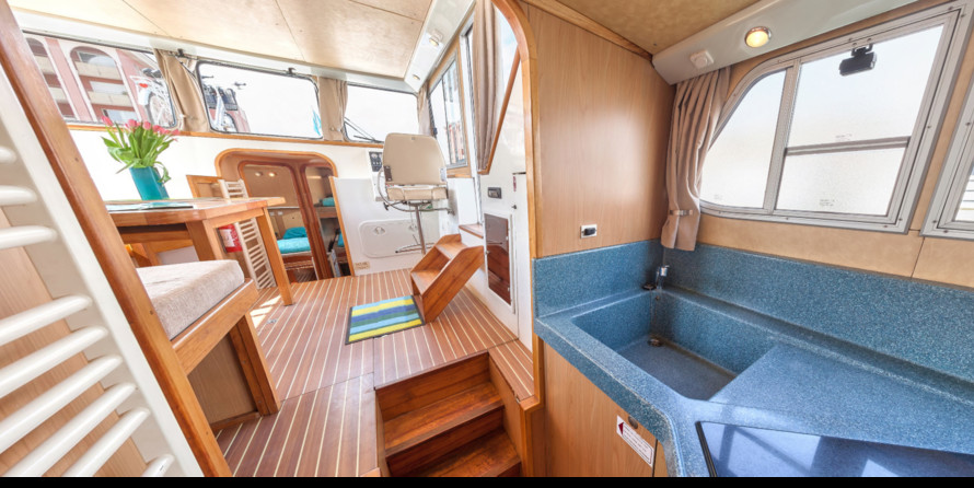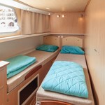 The living area of this houseboat consists of 3 cabins and accommodates 7 people. A shower is at the guests' disposal and there are 3 toilets on board.