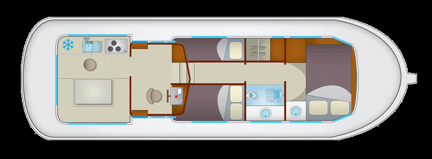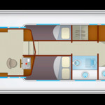 The living area of this houseboat consists of 3 cabins and accommodates 7 people. A shower is at the guests' disposal and there is 1 toilet on board.