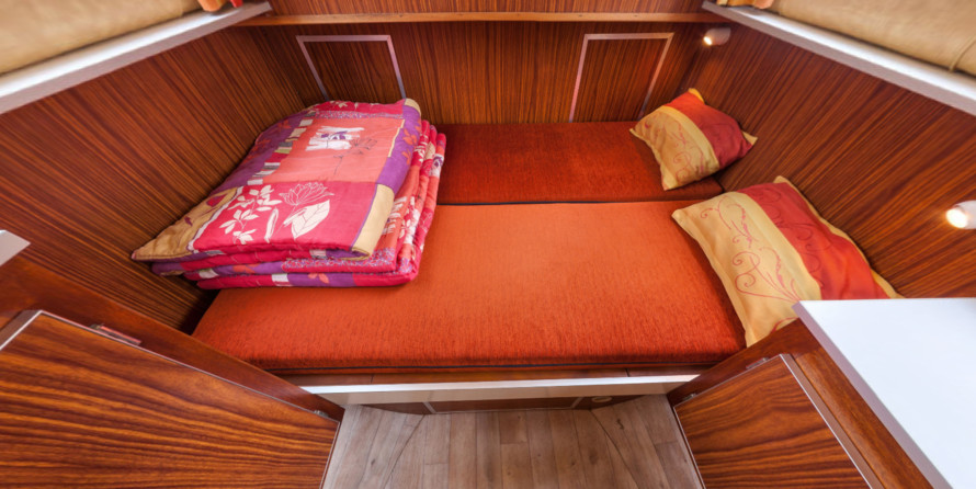 A well-equipped galley with oven, cooker, sink and kitchen utensils is prepared to facilitate cooking. There is also a coffee machine on board.