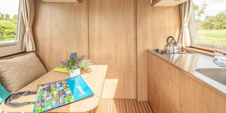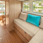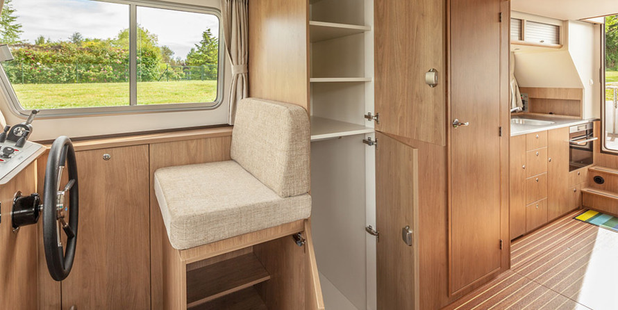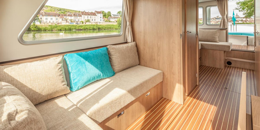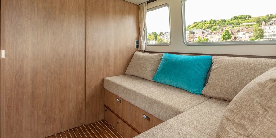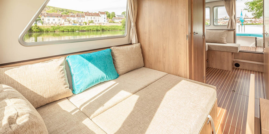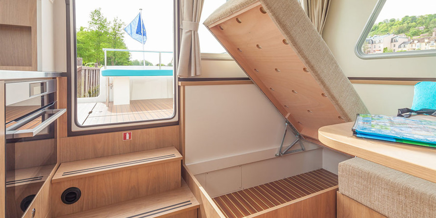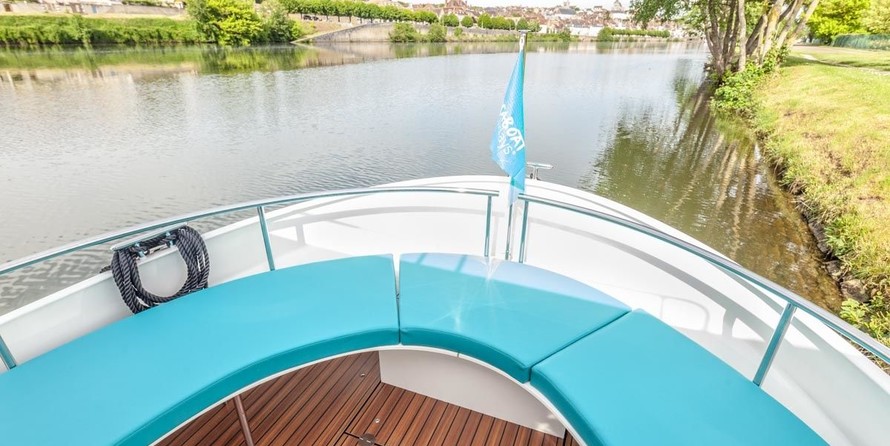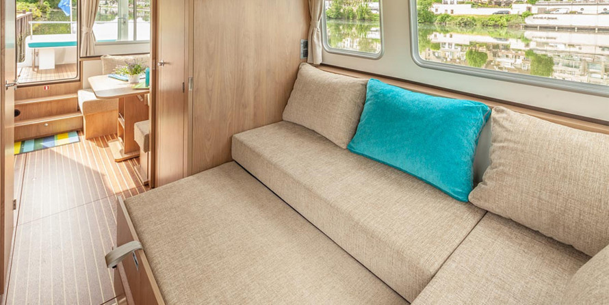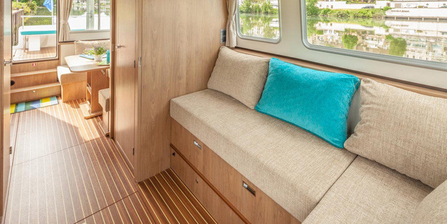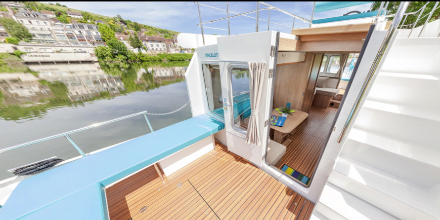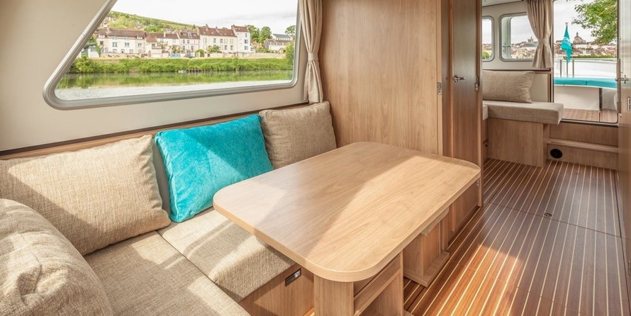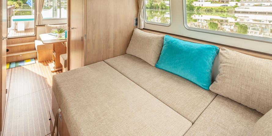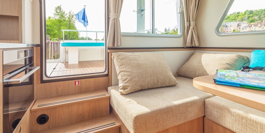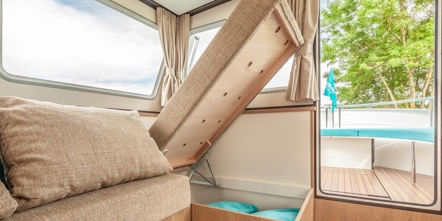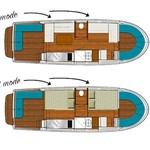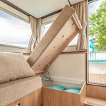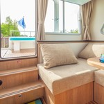 This houseboat is equipped with bimini and bow thruster. In chilly weather, guests will benefit from heating. an audio system, outside speakers, flybridge and inside speakers are also available.