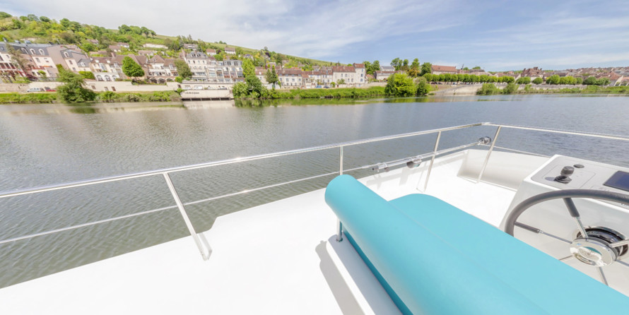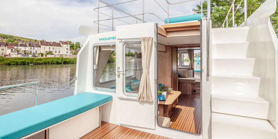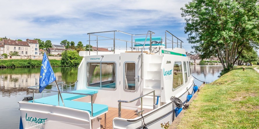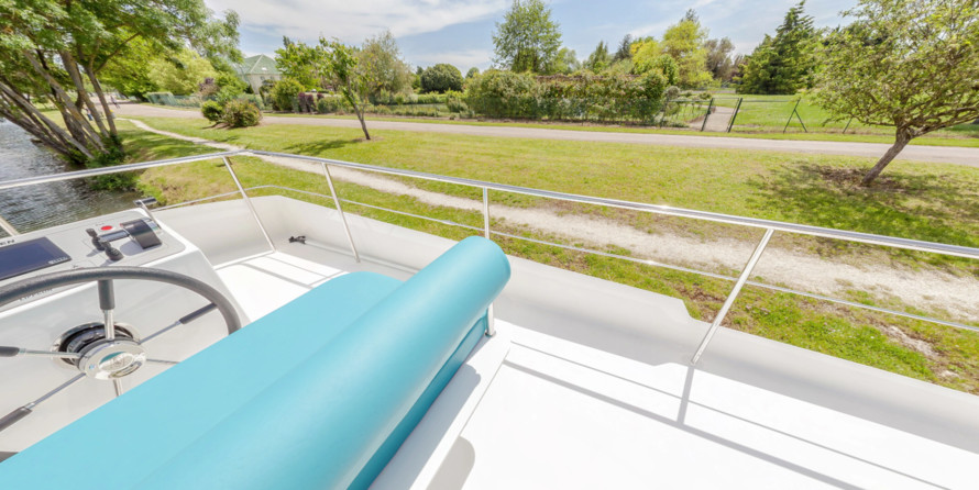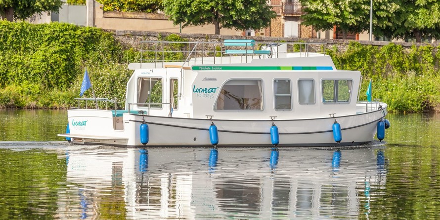 The Pénichette 950E Locaboat 18 houseboat was built in 2018, and it is docked in Locaboat Holidays Argens Minervois, France.